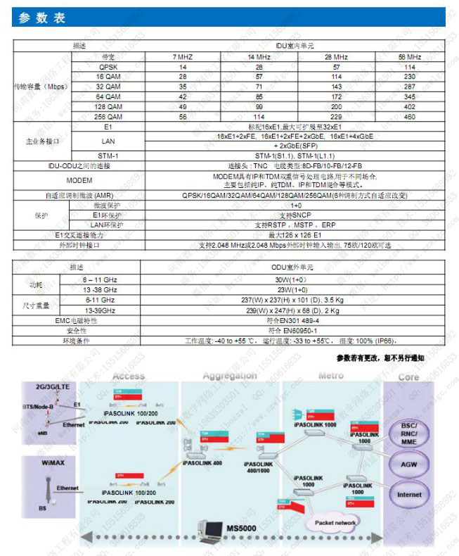 3、PTN數字微波:1+0配置,集成TDM交換、分組交換及微波光纖特性于一體的數字微波系統,是匯聚新一代分組IP微波高集成化產品。接口類型豐富、配置靈活,節約了投資成本、有效地提高了數據通道利用率。適用于4G/3G/LTE等網絡,實現新一代的混合型或全IP承載網絡。